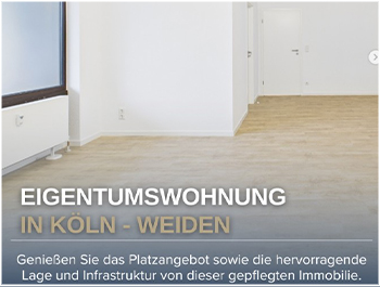 Verkauft – Köln Eigentumswohnung Die attraktive 3-Zimmer-Eigentumswohnung in zentraler Lage von Köln Weiden wurde in kurzer Zeit über dem angesetzten Inseratspreis erfolgreich vermittelt. Durch eine gezielte Vermarktungsstrategie, hohe Nachfrage und eine strukturierte Abwicklung konnten wir für unsere Auftraggeberin ein optimales