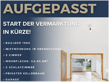 Aufgepasst Weilerswist – Mietwohnung Schon bald beginnen wir mit der Vermarktung einer Mietwohnung. Diese Immobilie befindet sich in Weilerswist und überzeugt unter anderem mit Ihrer außergewöhnlichen Lage und dem Potential dieser Wohneinheit. Außerdem verfügen wir ebenfalls über die Vermietung der anderen Wohneinheit dieses 2-Familienhauses.🍀✨ Eckdaten zu den Immobilien:🔹Mietwohnung im Erdgeschoss🔹Baujahr: 1965🔹Wohnfläche ca.85,8m²🔹Zwei Schlafzimmer🔹Privater Kellerraum🔹Gartenmitbenutzung🔹Garage & […]