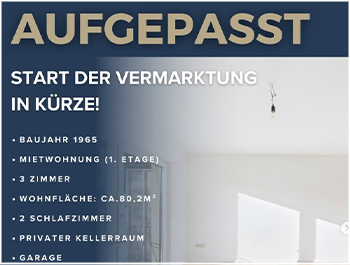Aufgepasst Weilerswist – Mietwohnung 1 OG Schon bald beginnen wir mit der Vermarktung einer Mietwohnung im beliebten Weilerswist. Diese Immobilie überzeugt unter anderem mit Ihrer außergewöhnlichen Lage und dem Potential dieser Wohneinheit. Außerdem verfügen wir ebenfalls über die Vermietung der anderen Wohneinheit dieses 2-Familienhauses.🍀✨ Eckdaten zu den Immobilien: 🔹Mietwohnung im 1. OG 🔹Baujahr: 1965 🔹Wohnfläche […]