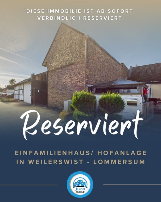 Mit voller Freude dürfen wir bekanntgeben, dass dieses Einfamilienhaus mit Hofanlage in Weilerswist – Lommersum ab sofort für Kaufinteressenten bis zur Beurkundung reserviert ist!🏠🎉