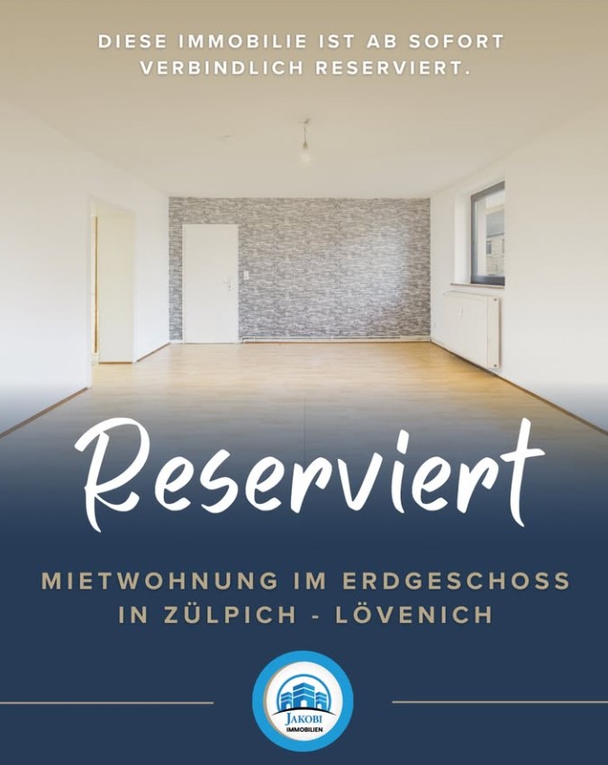 Ebenso dürfen wir bekanntgeben, dass diese Mietwohnung in Zülpich – Lövenich ab sofort für einen Interessenten bis zur Unterzeichnung des Mietvertrags reserviert ist!🎉