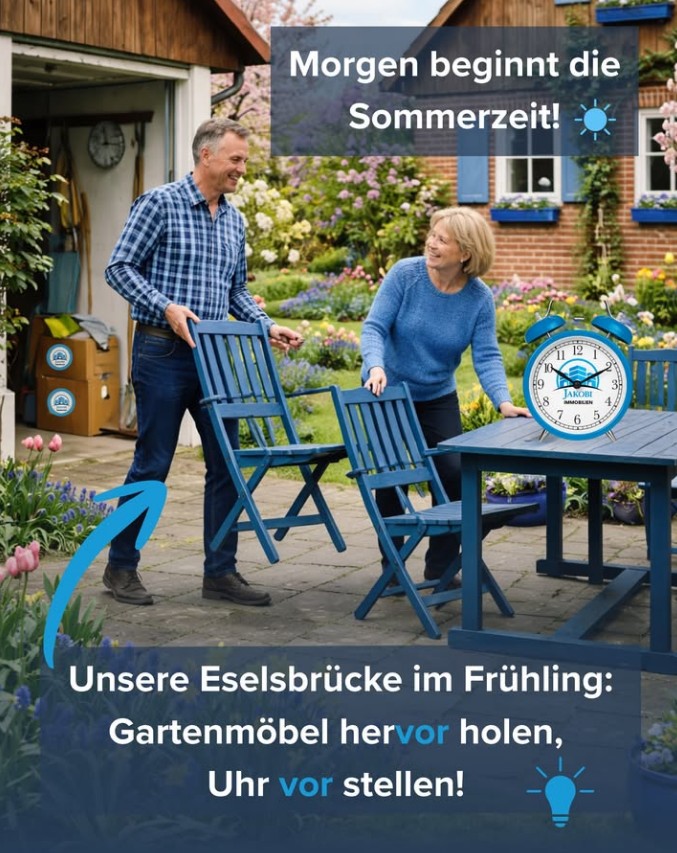 👉 Gartenmöbel hervorholen = Uhr vorstellen 🌞🪑